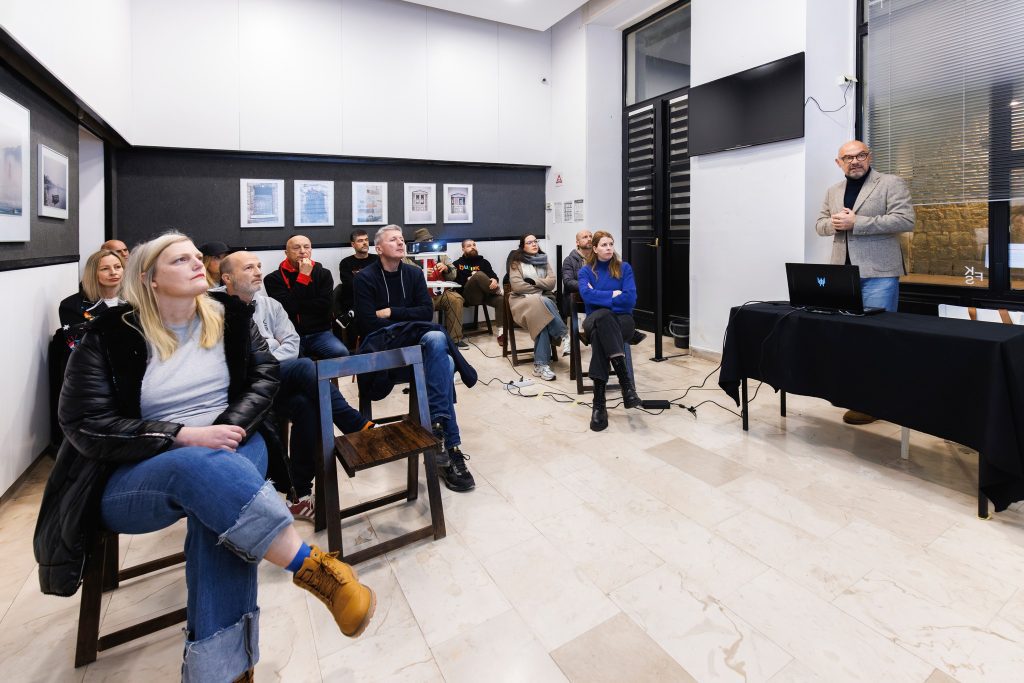 Predavanje se bavilo odnosom fotografije i tiska kao međusobno ovisnih sustava, uz naglasak na interdisciplinarni pristup koji povezuje fotografsku praksu, grafičke tehnologije i teoriju vizualne percepcije. Posebno je istaknuto kako fotografija svoju punu vidljivost i značenje ostvaruje ne samo u digitalnom okruženju, nego i kroz tiskane medije, koji joj daju materijalnost, trajnost i taktilnu dimenziju. Kroz niz primjera objašnjen je kompleksan proces prijenosa fotografije od snimanja do tiskanog otiska, kao i važnost razumijevanja tehničkih ograničenja tiska u kontekstu autorskih i estetskih odluka.